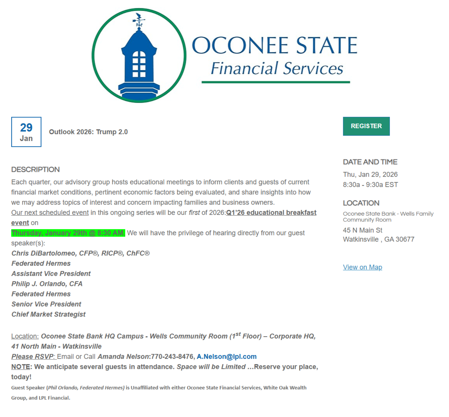 To be included in our partner promotions page please submit all entries to Caroline Middlebrooks at cmiddlebrooks@oconeechamber.org