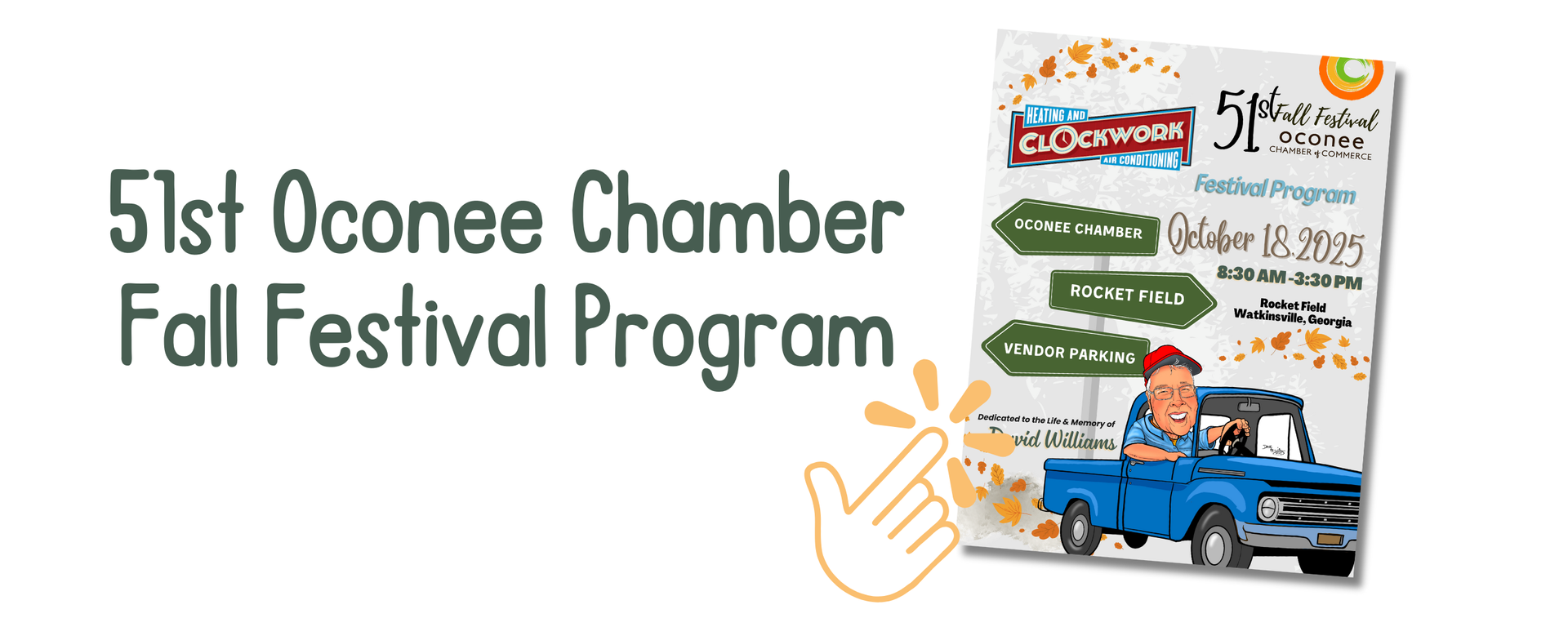 The Oconee Chamber Fall Festival started in 1974 and today is known as a premiere Arts & Crafts festival. It is held annually on the 3rd Saturday in October in Historic Downtown Watkinsville.